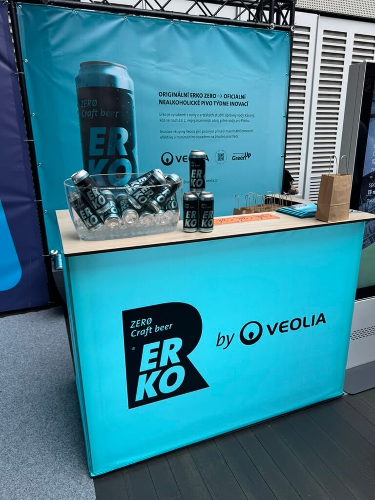 Novinka šla na stánku Veolie na dračku a hostesky měly plné ruce práce s rozdáváním piva. Velký zájem byl (nepřekvapivě) i o alkoholické Erko, které je vyráběno z recyklované vody pomocí sofistikované technologie, jež pomáhá ukázat, že jakoukoli vodu lze perfektně vyčistit – když víte, jak na to. Na stánku ale zbyl čas také na propagaci aktivit Veolie v oblasti energetiky a vodárenství.