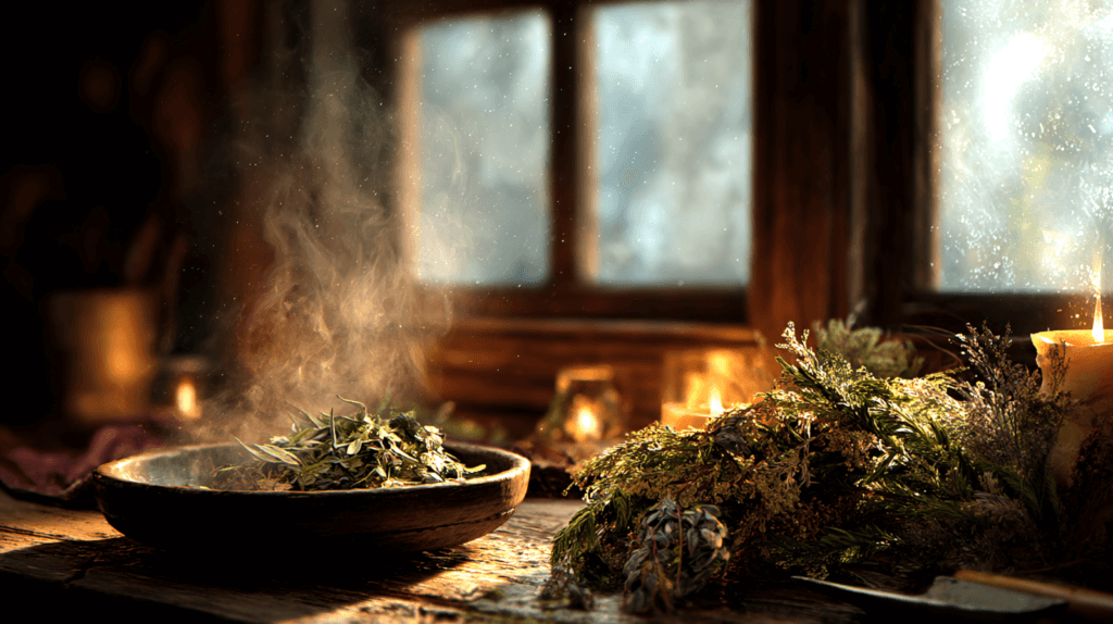 Další rostlinou spjatou se životem v chladných měsících je jalovec. Čaj z jalovcových bobulí se tradičně používal ke zlepšení trávení, při nachlazení a k posílení imunity během zimy. Ve středověku se jalovec často pálil nebo věšel nad vchodové dveře jako ochranný talisman proti zlým duchům a nemocem.